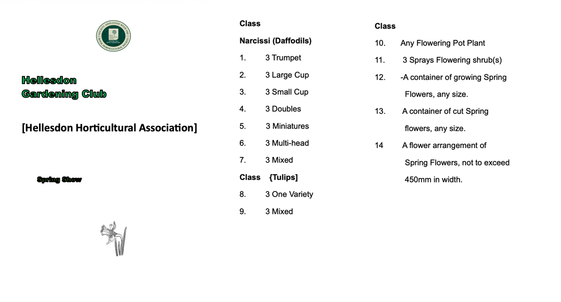 The Spring Show Schedule below gives the classes for entry into the show on 30th March 2026