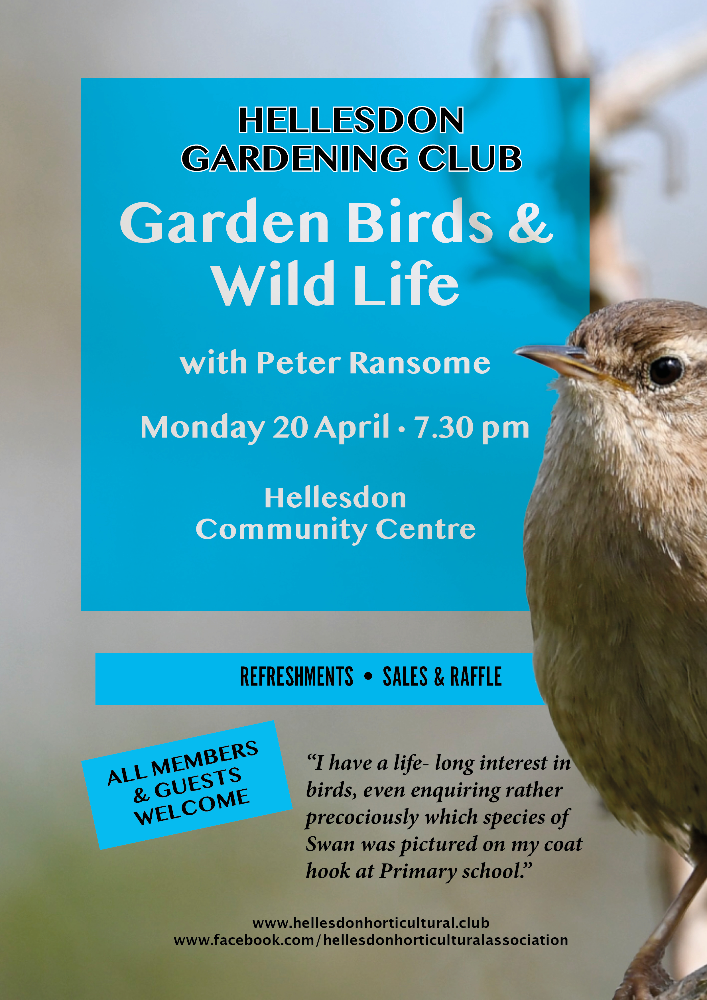 Monday 20th April - Garden Birds & Wild Life with Peter Ransome